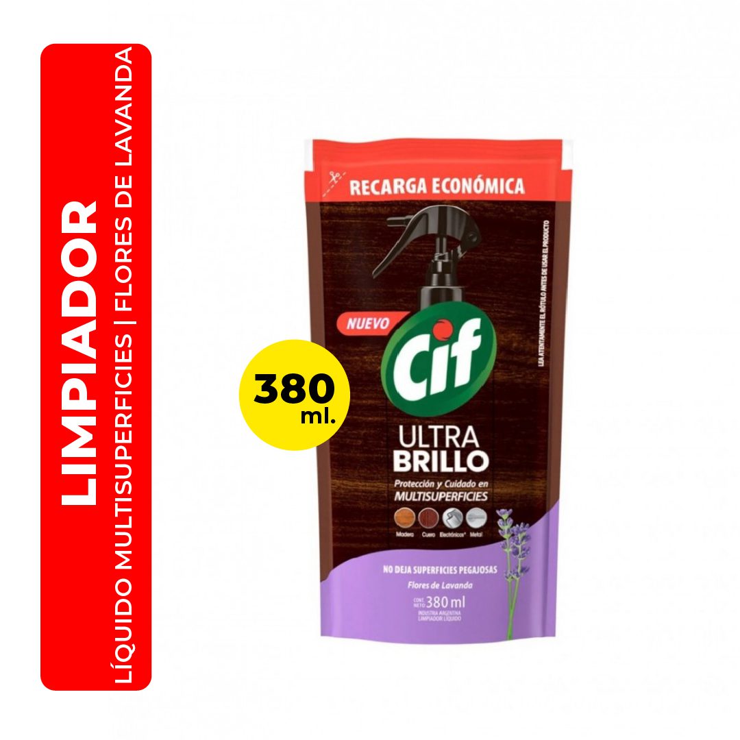3. LIMPIADOR LÍQUIDO MULTIUSO CIF ULTRA BRILLO FLORES DE LAVANDA 380ML
